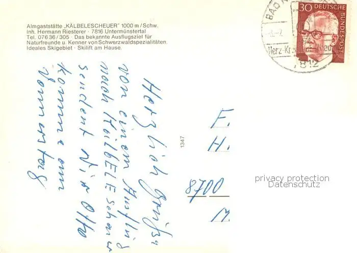 Kaelbelescheuer Almgaststaette Kaelbelescheuer postalisch gelaufen nach 1965 Erhaltung siehe scans [WerneD78] WernPID7