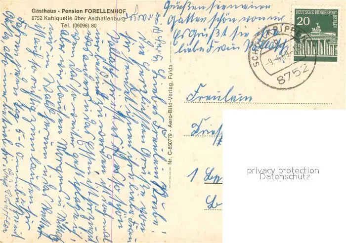 Kahlquelle Gasthaus Pension Forellenhof postalisch gelaufen 1969 Erhaltung siehe scans [FriedD77] Frierer
