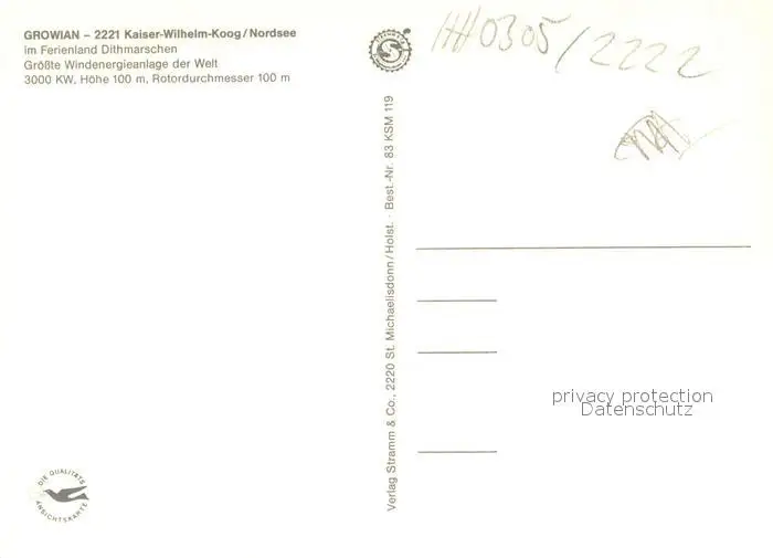 Kaiser-Wilhelm-Koog Growian Windenergieanlage Kaiser-Wilhelm-Koog postalisch nicht gelaufen nach 1965 Erhaltung siehe scans [WerneD78] WernPID7