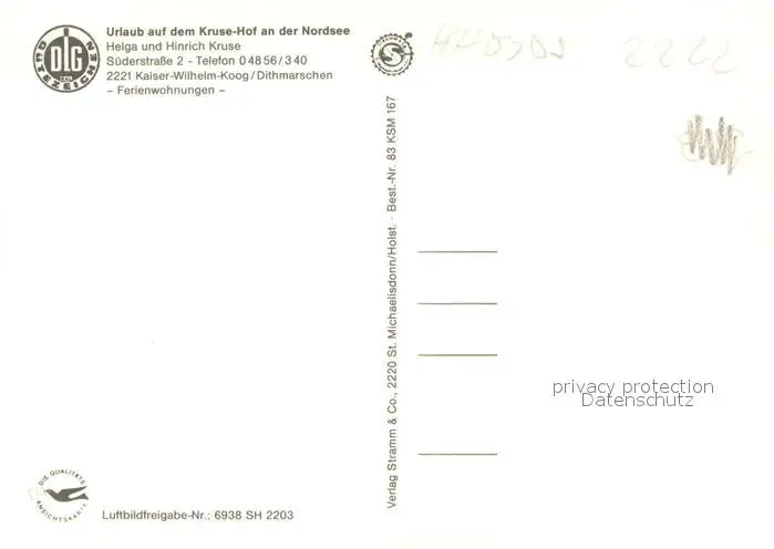 Kaiser Wilhelm Koog Kategorie Alte Ansichtskarten Postkarten bx93197 Kaiser Wilhelm Koog Kruse Hof Fliegeraufnahme Kaiser Wilhelm Koog postalisch nicht gelaufen nach 1965 Erhaltung siehe scans [WerneD78]