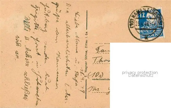 Kamenz_Sachsen Blick auf die Stadtkirche Kamenz Sachsen postalisch gelaufen 1949 Erhaltung siehe scans [WerneD78] WernPID7