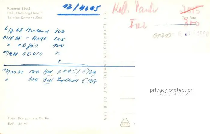 Kamenz_Sachsen HO Hutberg Hotel Kamenz Sachsen postalisch nicht gelaufen 1969 Erhaltung siehe scans [FriedD77] Frierer