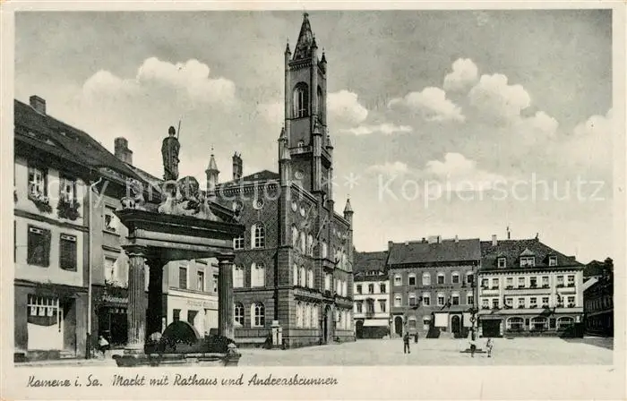 Kamenz_Sachsen Markt mit Rathau und Andreasbrunnen Kamenz Sachsen postalisch nicht gelaufen 1921-1965 Erhaltung siehe scans [WerneD78] WernPID7