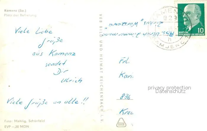 Kamenz_Sachsen Platz der Befreiuung Kamenz Sachsen postalisch gelaufen nach 1965 Erhaltung siehe scans [WerneD78] WernPID7