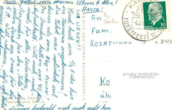 Kamenz_Sachsen Postmeilensaeule Kamenz Sachsen postalisch gelaufen 1963 Erhaltung siehe scans [FriedD77] Frierer
