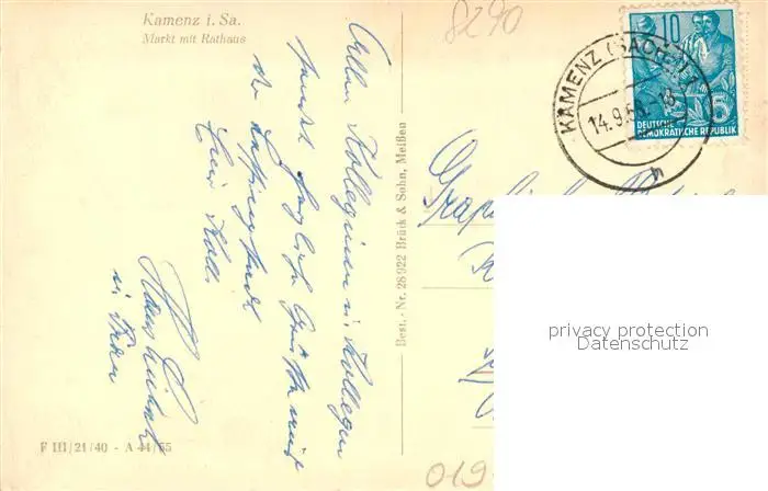 Kamenz_Sachsen Rathaus Markt Kamenz Sachsen postalisch gelaufen 1958 Erhaltung siehe scans [KathaD81] Kathoren