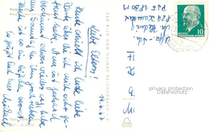 Kamenz_Sachsen Rosengarten am Lessinghaus Kamenz Sachsen postalisch gelaufen 1967 Erhaltung siehe scans [FriedD77] Frierer
