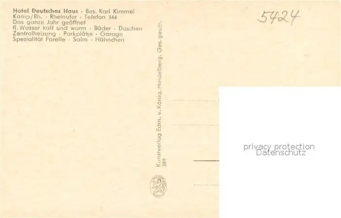 Kamp-Bornhofen Hotel Deutsches Haus Aussenansicht Kamp-Bornhofen postalisch nicht gelaufen 1921-1965 Erhaltung siehe scans [LiesaD40] LiesID40