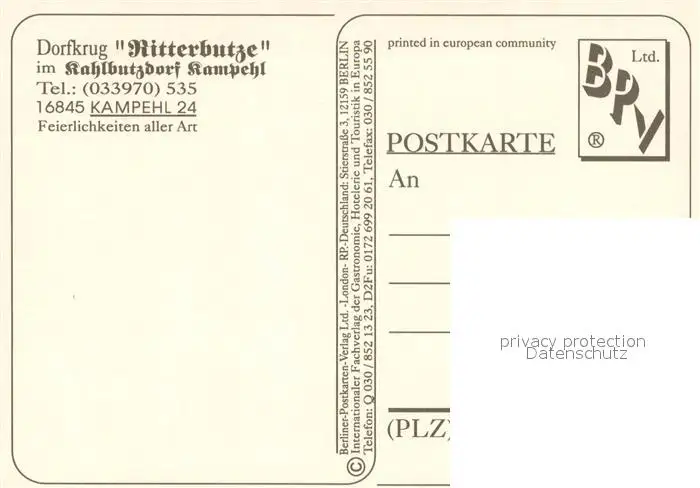 Kampehl Dorfkrug Ritterbutze im Kahlbutzdorf Gaststraeume Terrasse Kampehl postalisch nicht gelaufen nach 1965 Erhaltung siehe scans [WerneD78] WernPID7