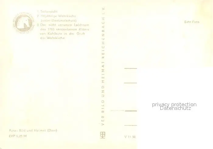 Kampehl Teilansicht 700jaehrige Wehrkirche Denkmalschutz Gruft Ritter von Kahlbutz Kampehl postalisch nicht gelaufen 1974 Erhaltung siehe scans [FriedD77] Frierer