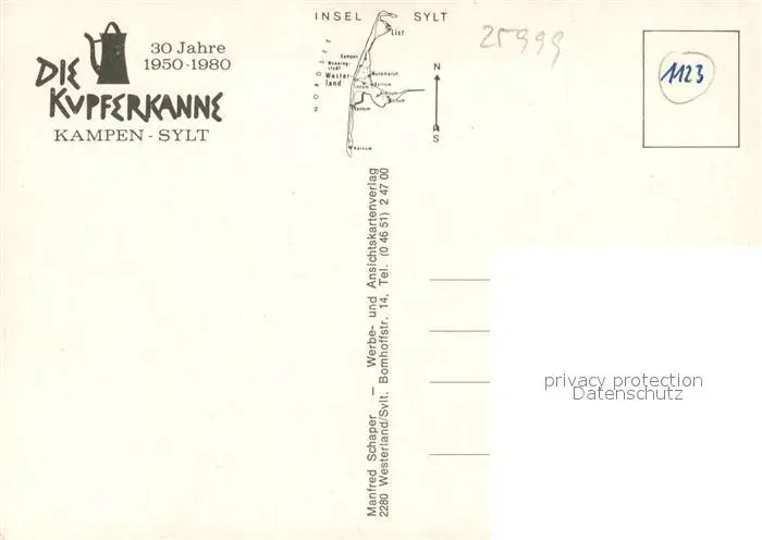 Kampen_Sylt Die Kupferkanne Gaststaette Restaurant Kampen Sylt postalisch nicht gelaufen nach 1965 Erhaltung siehe scans [FriedD77] Frierer