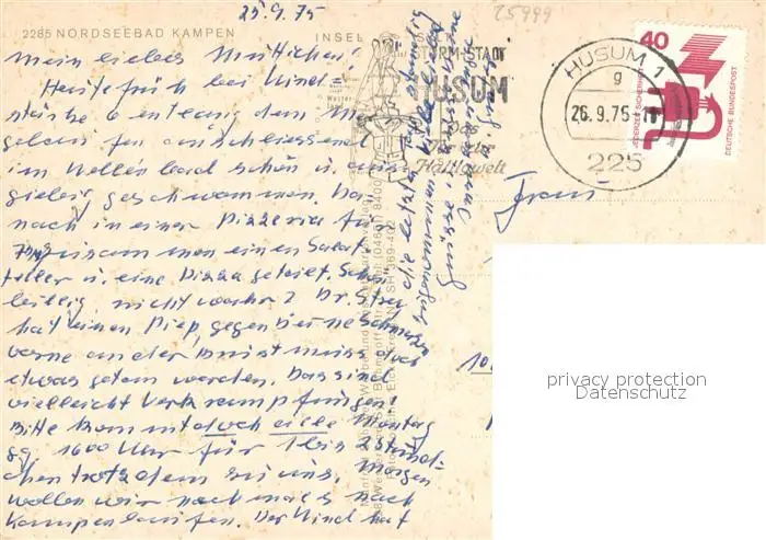 Kampen_Sylt Fliegeraufnahme Kampen Sylt postalisch gelaufen 1975 Erhaltung siehe scans [WerneD78] WernPID7