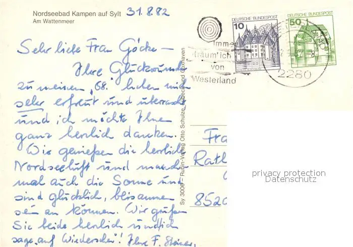 Kampen_Sylt Friesenhaeuser am Wattenmeer Kampen Sylt postalisch gelaufen 1982 Erhaltung siehe scans [FriedD77] Frierer