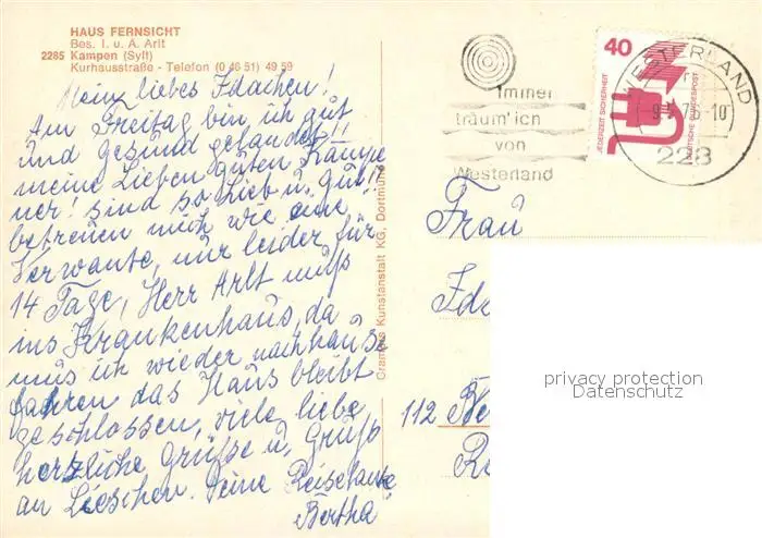Kampen_Sylt Haus Fernsicht Strandpartie Blick vom Haus Gastraum Kampen Sylt postalisch gelaufen 1976 Erhaltung siehe scans [WerneD78] WernPID7