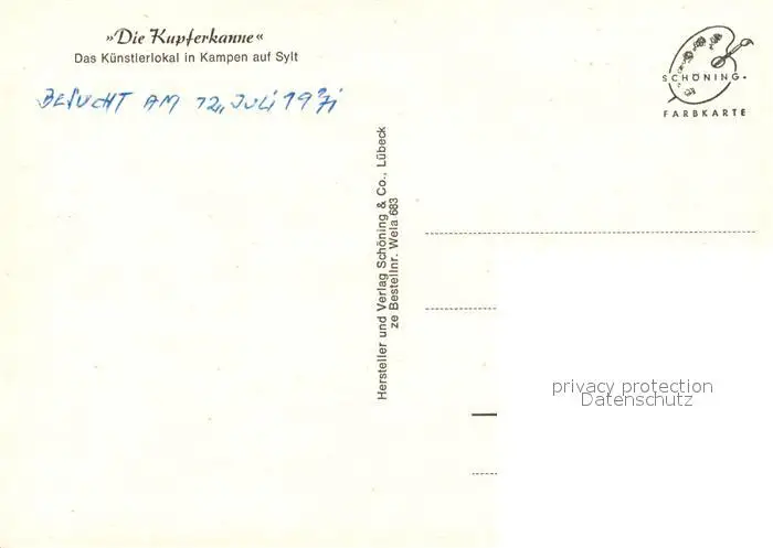 Kampen_Sylt Kuenstlerlokal Die Kupferkanne Kampen Sylt postalisch nicht gelaufen 1971 Erhaltung siehe scans [FriedD77] Frierer