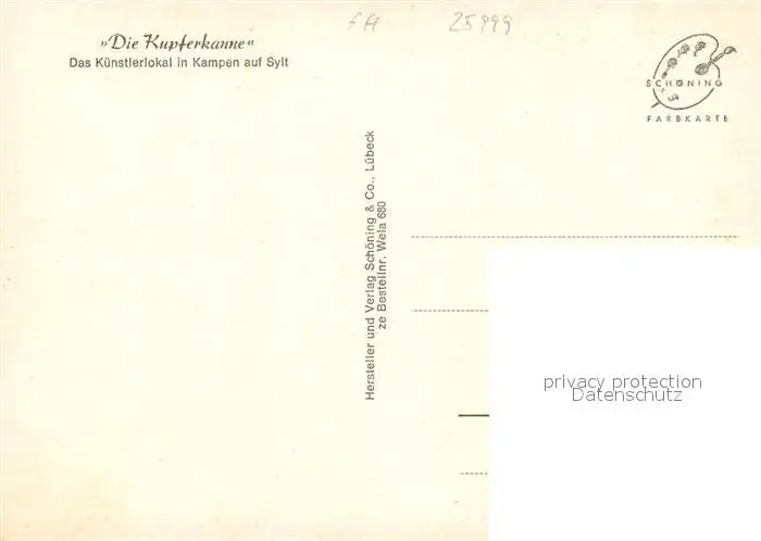 Kampen_Sylt Kupferkanne Restaurant Kamin Kuenstlerlokal Nordseebad Kampen Sylt postalisch nicht gelaufen nach 1965 Erhaltung siehe scans [FriedD77] Frierer