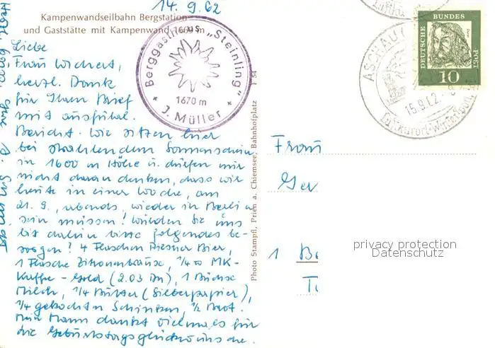 Kampenwand_Chiemgau Kampenwandseilbahn Bergstation und Gaststaette Kampenwand Chiemgau postalisch gelaufen 1962 Erhaltung siehe scans [FriedD77] Frierer