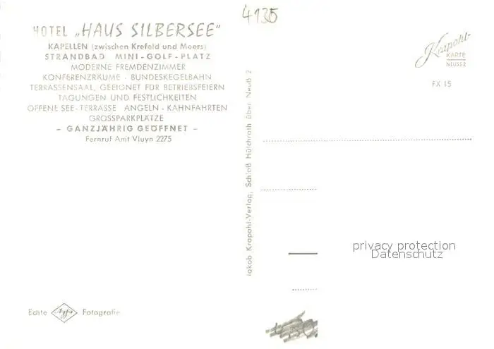 Kapellen_Geldern Hotel Haus Silbersee Strandbad Minigolfplatz Details Kapellen_Geldern postalisch nicht gelaufen 1921-1965 Erhaltung siehe scans [WerneD78] WernPID7