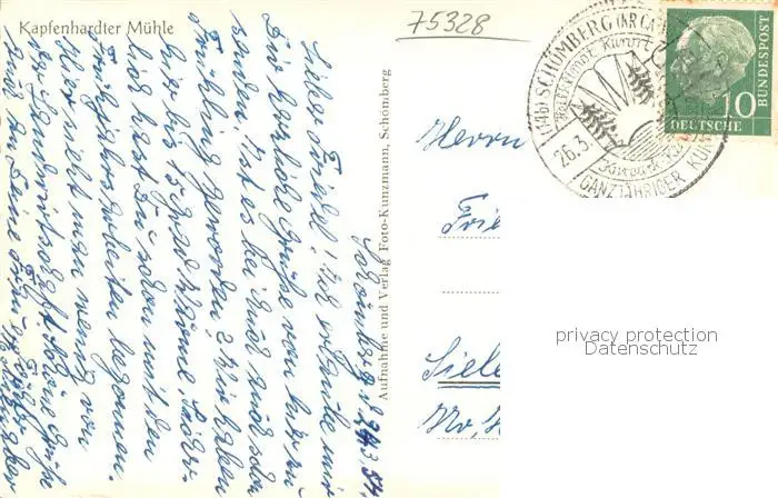 Kapfenhardt Kapfenhardter Muehle Kapfenhardt postalisch gelaufen 1954 Erhaltung siehe scans [FriedD77] Frierer