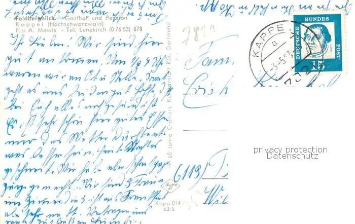 Kappel_Lenzkirch Gasthof Pension Feldbergblick Kappel_Lenzkirch postalisch gelaufen 1963 Erhaltung siehe scans [KathaD81] Kathoren