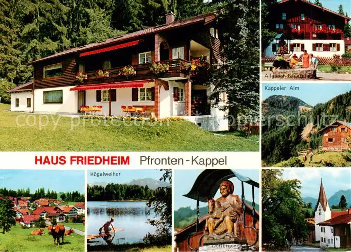 AK / Ansichtskarte Kappel_Pfronten Haus Friedheim Koegelweiher Dorfbrunnen Kirche Kappeler Alm Kappel Pfronten