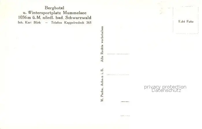 Kappelrodeck Berghotel Mummelsee Kappelrodeck postalisch nicht gelaufen 1921-1965 Erhaltung siehe scans [KathaD81] Kathoren