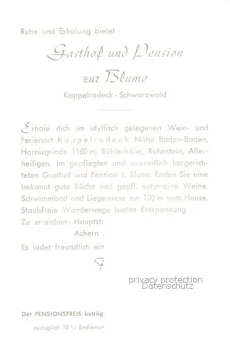 Kappelrodeck Gasthof Pension zur Blume Schwimmbad Kappelrodeck postalisch nicht gelaufen nach 1965 Erhaltung siehe scans [WerneD78] WernPID7