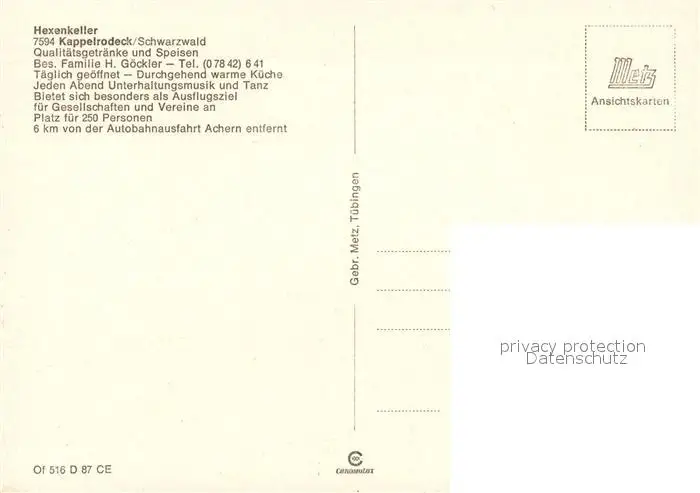 Kappelrodeck Hexenkeler Gastraeume Bar Kappelrodeck postalisch nicht gelaufen nach 1965 Erhaltung siehe scans [WerneD78] WernPID7