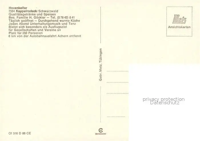 Kappelrodeck Hexenkeller Gastraeume Kappelrodeck postalisch nicht gelaufen nach 1965 Erhaltung siehe scans [WerneD78] WernPID7