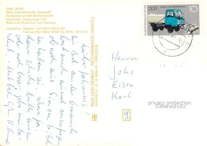 Karl-Marx-Stadt Cafe Bruehl Interhotel Kongress Punkthaus Muehlenstrasse Interhotel Chemnitzer Hof Rathaus Karl-Marx-Stadt postalisch gelaufen 1989 Erhaltung siehe scans [WerneD78] WernPID7