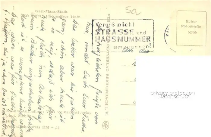 Karl-Marx-Stadt HO Hotel Chemnitzer Hof Karl-Marx-Stadt postalisch gelaufen 1921-1965 Erhaltung siehe scans [KathaD81] Kathoren