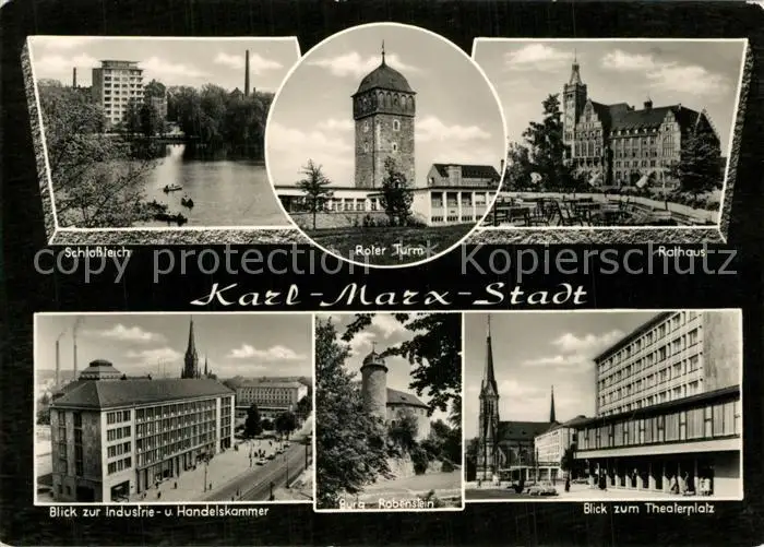 AK / Ansichtskarte Karl Marx Stadt Schlossteich Rathaus Industrie Handelskammer Theaterplatz Burg Karl Marx Stadt