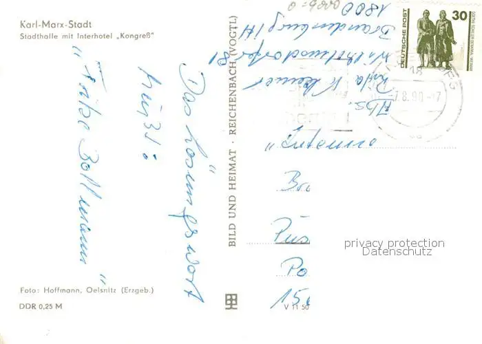Karl-Marx-Stadt Stadthalle Interhotel Kongress Karl-Marx-Stadt postalisch gelaufen 1990 Erhaltung siehe scans [KathaD81] Kathoren