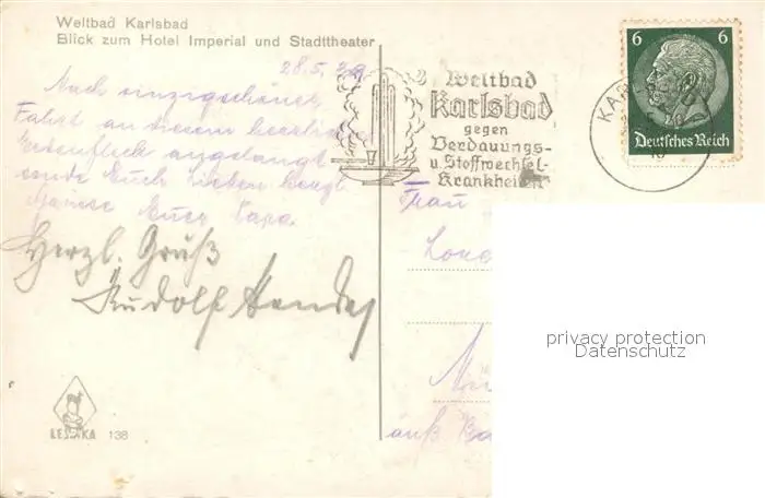 Karlsbad_Karlsruhe Blick vom Hotel Imperial und Stadttheater Karlsbad_Karlsruhe postalisch gelaufen 1939 Erhaltung siehe scans [LiesaD40] LiesID40