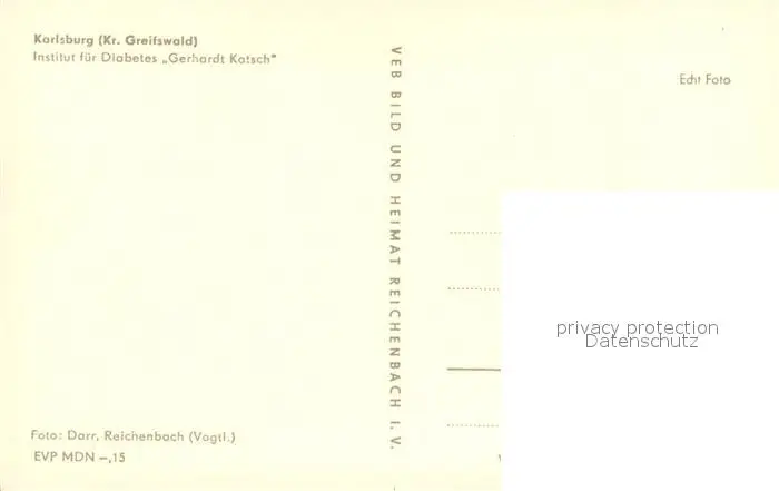 Karlsburg_Greifswald Institut fuer Diabetes Gerhardt Katsch Karlsburg Greifswald postalisch nicht gelaufen 1964 Erhaltung siehe scans [FriedD77] Frierer