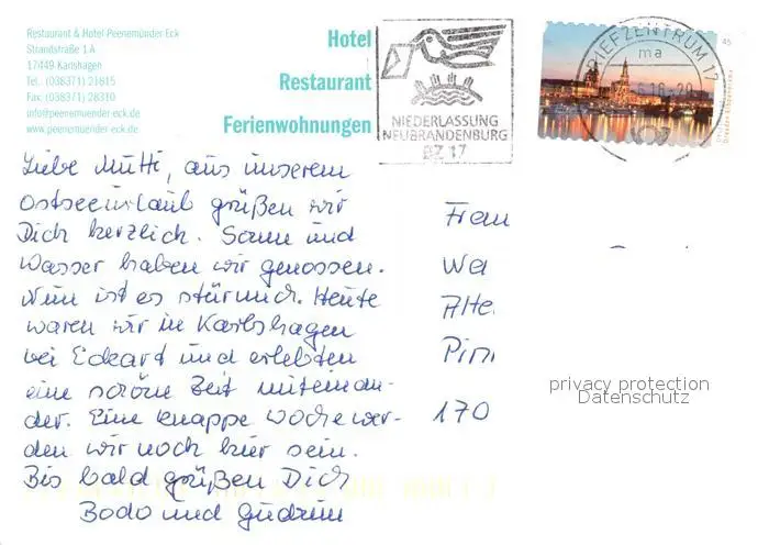 Karlshagen Restaurant Hotel Peenemuender Eck Terrasse Strand Zimmer Karlshagen postalisch gelaufen 2016 Erhaltung siehe scans [WerneD78] WernPID7