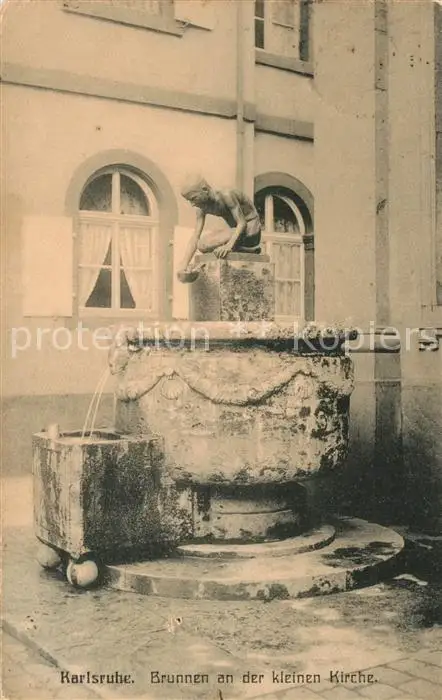 AK / Ansichtskarte Karlsruhe_Baden Brunnen an der kleinen Kirche Karlsruhe_Baden