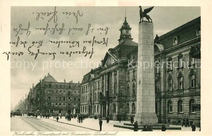 AK / Ansichtskarte Karlsruhe_Baden Hauptpost mit Grenadier Denkmal Karlsruhe_Baden