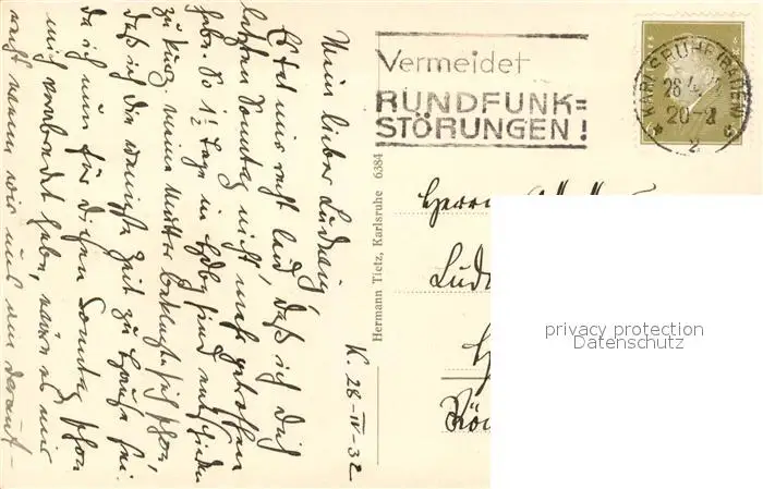 Karlsruhe_Baden Hauptpost mit Grenadier Denkmal Karlsruhe_Baden postalisch gelaufen 1932 Erhaltung siehe scans [WerneD78] WernPID7