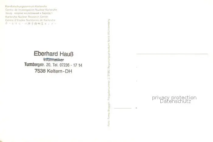 Karlsruhe_Baden Kernforschungszentrum Karlsruhe_Baden postalisch nicht gelaufen nach 1965 Fliegeraufnahme Erhaltung siehe scans [FriedD77] Fliegeraufnahme Frierer