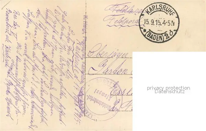 Karlsruhe_Baden Kategorie Alte Ansichtskarten Postkarten bx76097 Karlsruhe_Baden Lazarett Karlsruhe_Baden postalisch gelaufen 1915 Feldpost Stempel Erhaltung siehe scans [KathaD81]