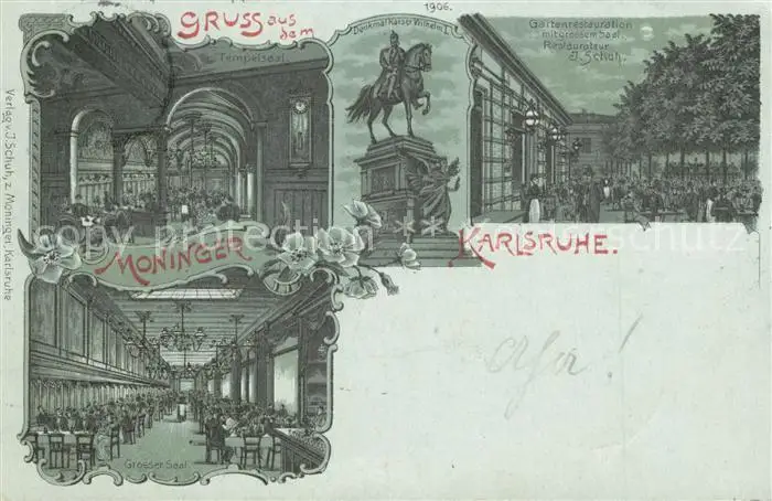 Karlsruhe_Baden Kategorie Alte Ansichtskarten Postkarten bx56269 Karlsruhe_Baden Moninger Denkmal Kaiser Wilhlem I Karlsruhe_Baden postalisch gelaufen 1899 Erhaltung siehe scans [NatalD47]