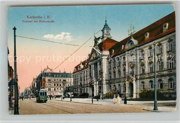 AK / Ansichtskarte Karlsruhe_Baden Postamt mit Kaiserstrasse Strassenbahn Karlsruhe_Baden