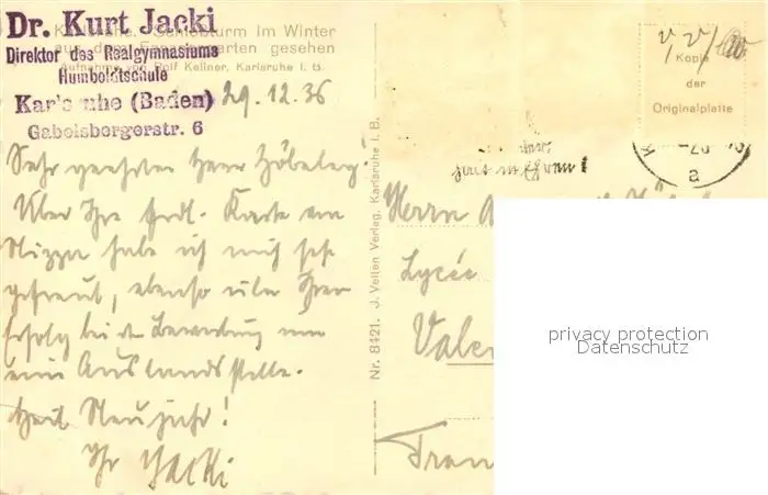 Karlsruhe_Baden Schlossturm Karlsruhe_Baden postalisch gelaufen 1936 Erhaltung siehe scans [WerneD78] WernPID7