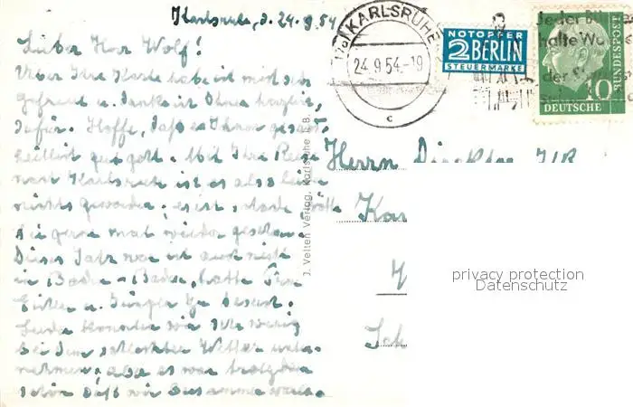 Karlsruhe_Baden Schwarzwaldhalle Karlsruhe_Baden postalisch gelaufen 1954 Erhaltung siehe scans [WerneD78] WernPID7