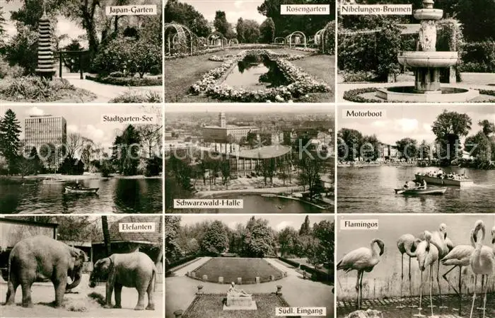 AK / Ansichtskarte Karlsruhe_Baden Stadtgarten Japan Garten Rosengarten Elefanten Flamingos Karlsruhe_Baden