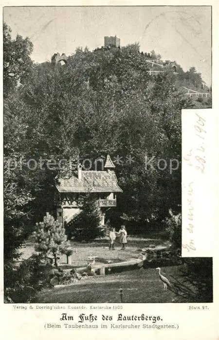 Karlsruhe_Baden Taubenhaus im Stadtgarten Karlsruhe_Baden postalisch gelaufen 1901 Erhaltung siehe scans [KathaD81] Kathoren