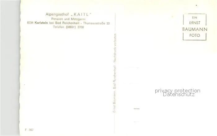 Karlstein_Oberbayern Alpengasthof Kaitl Karlstein_Oberbayern postalisch nicht gelaufen nach 1965 Erhaltung siehe scans [WerneD78] WernPID7