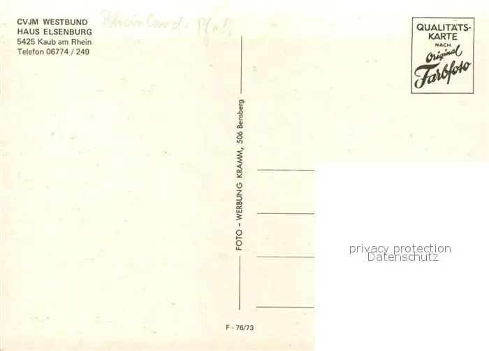 Kaub CVJM Westbund Haus Elsenburg Kaub postalisch nicht gelaufen nach 1965 Erhaltung siehe scans [LiesaD40] LiesID40