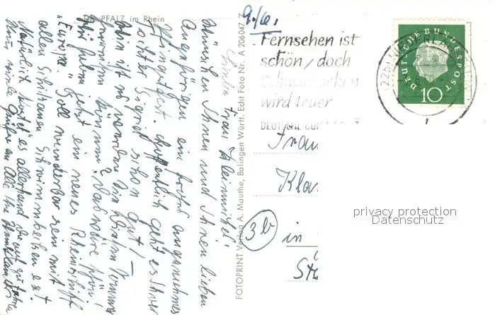 Kaub_Rhein Die Pfalz im Rhein Kaub_Rhein postalisch gelaufen 1960 Erhaltung siehe scans [WerneD78] WernPID7